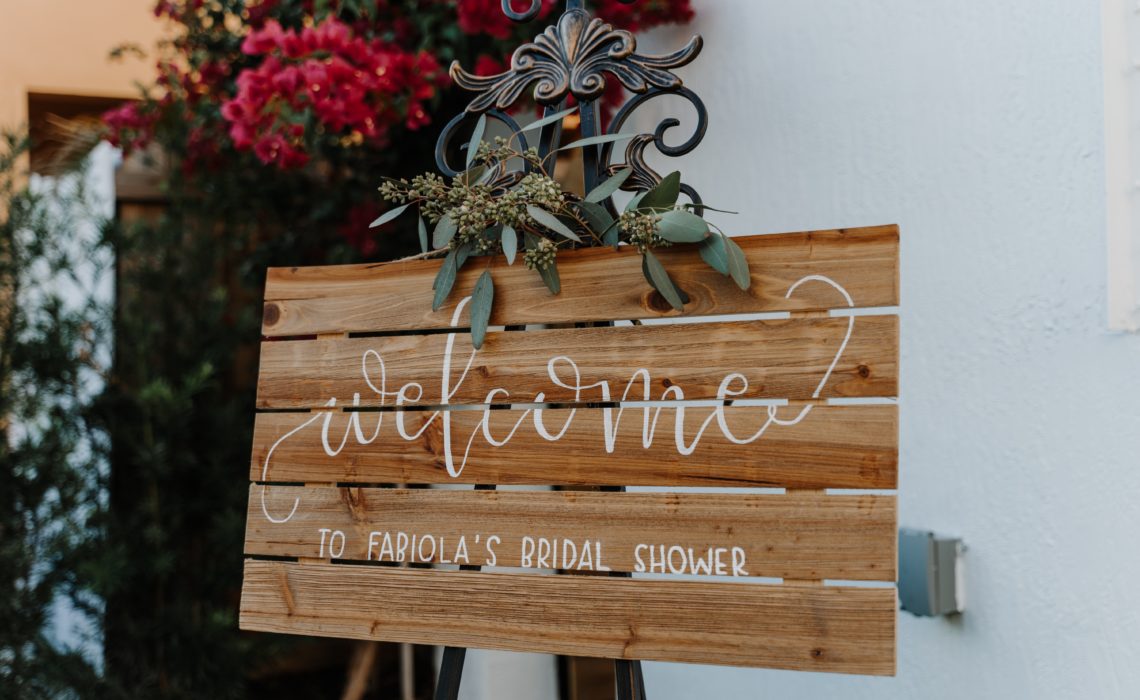 A mirror sign will fit just about any aesthetic. Use a gold ornate framed mirror for a vintage glam affair, or a simple and sleek mirror for a modern celebration. Write your message on the mirror with a chalk pen or oil-based marker. You’ll be able to wash these off, which is ideal if you’re renting or want to reuse the mirror in your home.