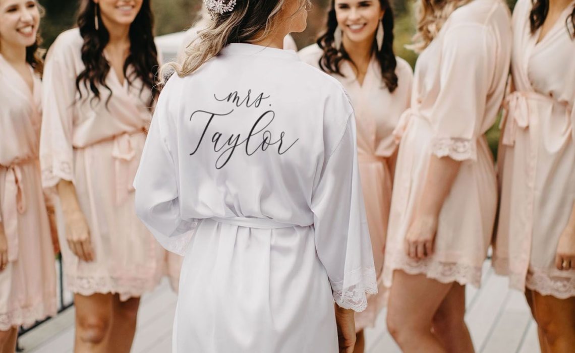 Let’s say you are stuck on the idea of purchasing matching robes. If you decide to do so, perhaps avoid writing anything related to your wedding on the backside. A robe with your bridesmaids initials or perhaps a simple plain color is something they can wear for the time to come.