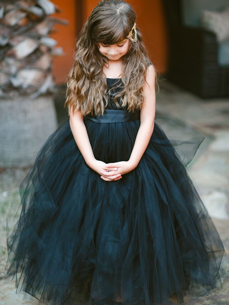 Flowers Girls in Black. Wedding Party in Black. The officiant dressed up as your favorite classic scary character or just full mystery creepy in a dark hood like the Grim Reaper. You can scale the wedding party’s halloween attire as much or as little as you’d like for a more classy gothic to a full Halloween soiree.