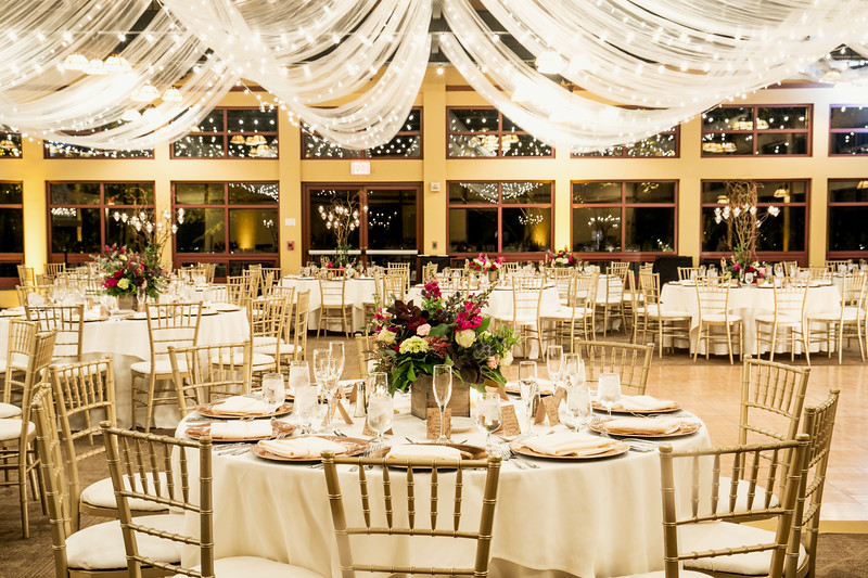 The Stone Ridge Event Center is an elegant and spacious venue just 25 minutes outside of downtown Atlanta. The property features a 20,000 square-foot indoor event space, as well as a gorgeous outdoor area that features a pergola, Japanese garden, and beautiful surrounding greenery. The indoor space can comfortably host up to 500 guests, making it ideal for large wedding celebrations. The lobby includes a stone fireplace, while the formal dining room features elegant chandeliers. Amenities and services include a bridal suite, groom’s room, ample parking, an A/V system to rent with a staff member to run it, and tables and gold Chiavari chairs.