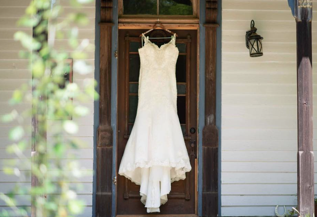 The property includes an 1857-built house where the bridal party can get ready, as well as a small barn and cabin that can be used for photos of the couple and wedding party. The reception space is an open-air barn that is accented with stained glass windows and chandeliers, as well as mason jar and string lights. There is an outdoor space for the ceremony, which includes an altar and wooden church pew seating. The venue includes access to a sister photography team that works exclusively with the location.