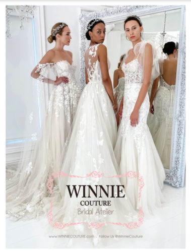 Winnie Couture is a high-end bridal brand with a modern mix of classic elegant and sophisticated couture. It blends femininity and luxury to create wedding dresses that are flattering and timeless. Our most coveted designer wedding dresses are handcrafted with the finest European fabrics adorned with Swarovski crystal embellishments. Every bride can complete their vision and accent their gown from a selection of crystal belts, delicate veils, and statement jewelry.